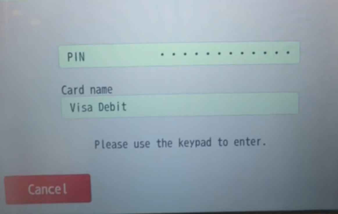 - カードを挿入し、4桁のPIN(暗証番号)を入力
