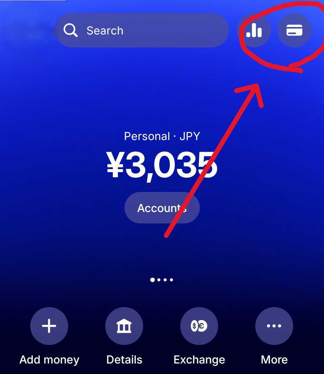 - Revolutアプリを開き、上部の「カードアイコン」をタップ