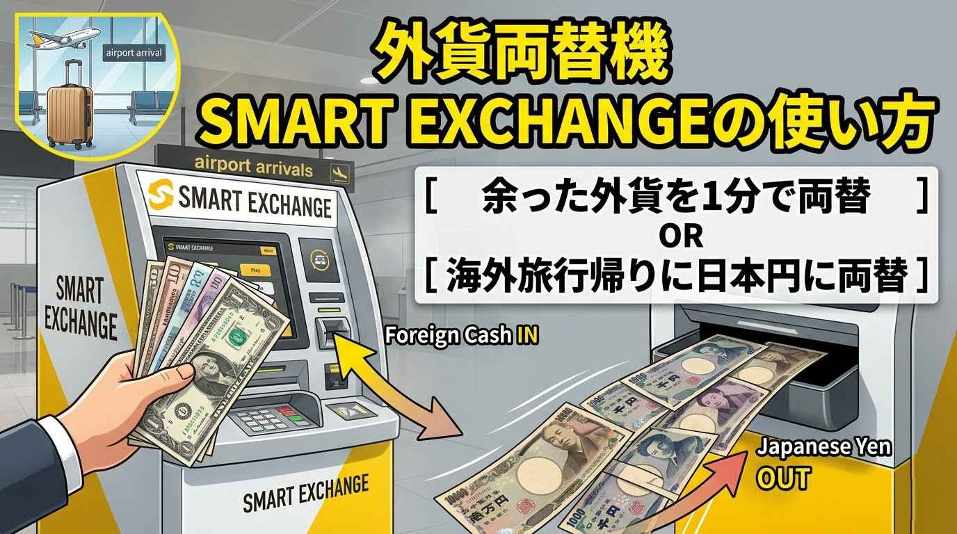 海外旅行で余った外貨を日本円に戻すなら、Smart Exchange(スマートエクスチェンジ)が手軽さとレートのバランスで頭一つ抜けています。